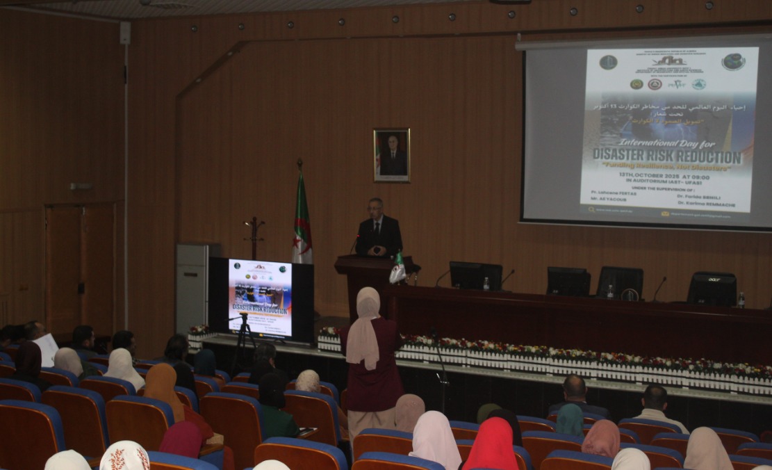 On Monday, October 13, 2025, Ferhat Abbas University Setif 1 commemorated the International Day for Disaster Risk Reduction under the theme “Investing in Resilience, Not in Disasters”, at the Auditorium of the Institute of Architecture and Earth Sciences.