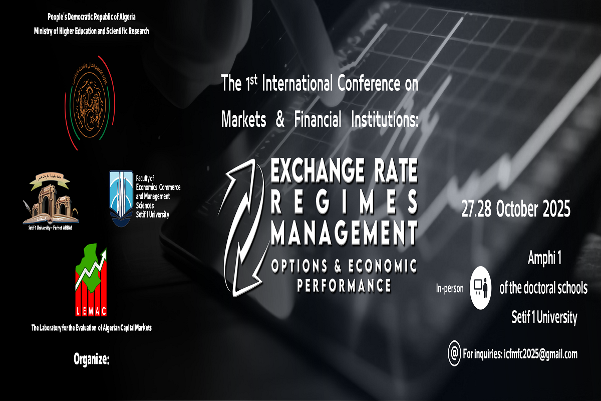 The Faculty of Economics, Commerce and Management Sciences, in collaboration with the Laboratory for the Evaluation of Algerian Capital Markets, is organizing the 1st International Conference on Markets & Financial Institutions titled: “Exchange Rate Regimes Management: Options & Economic Performance”,